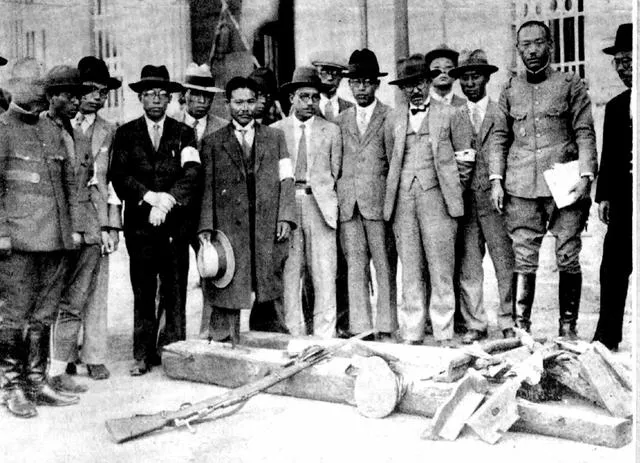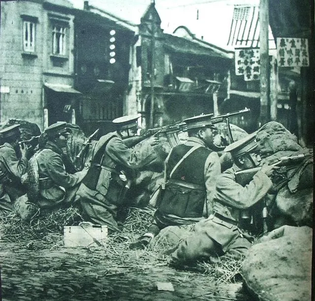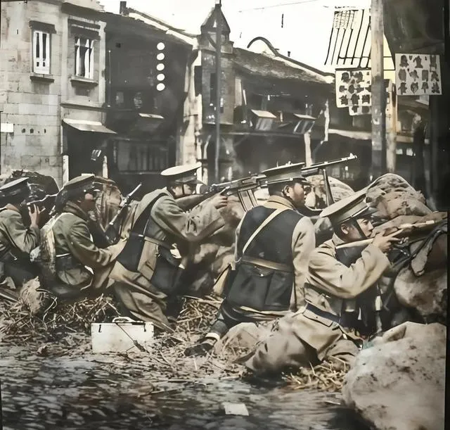 抗战上色老照片:展示缴获战利品,与日军通城激战,日军贼喊捉贼。