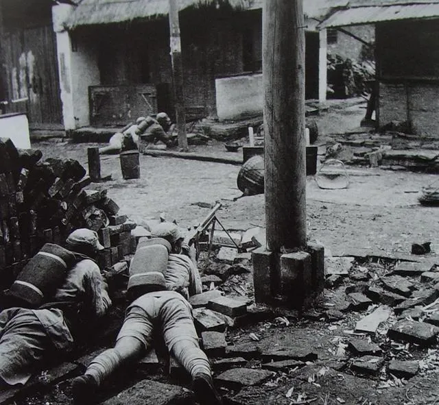 这排趴在稻草堆后的叫街巷临时火力点,轻机枪压着门洞,后背的弹药包一格一格,前头的沙包都被水泡过,颜色发黑,开火那一下,烟从枪口喷出一小团白,耳朵被震得发木。
