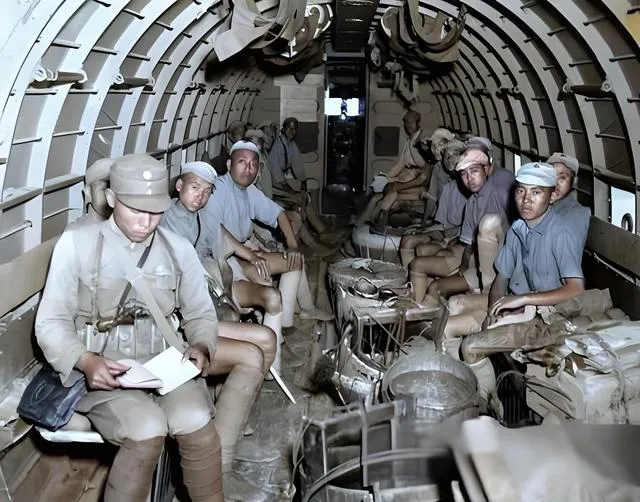 这排椭圆的舷窗和弧形肋骨,是C‑47的骨架,阳光从小窗漏进来,尘埃在光里打旋,照片定住那一刻,人却在往前赶路,想着南京的方向,谁都没说话,心里都明白这一次是回家接胜利。