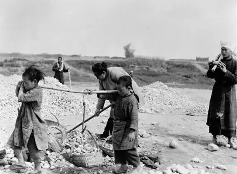 抗战老照片中民族的面孔:八路军脱衣给妇女遮羞,新6军空降南京。