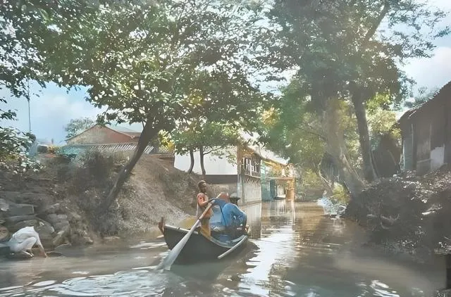 水面上的这块亮银叫倒影,天光一翻,整座楼都掉进水里,船桨一搅,楼就被切成碎块,小时候我爱趴船沿看水,爸在后头吼一句别伸太远,河里凉,手一时间就麻。