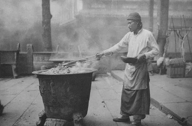 这个穿短褂的人叫香工,灰布围裙遮到膝,袖口挽两圈,手背有被香灰烫出的细白痕,早晚要扫两遍灰,顺手还替来客理香脚,别把长香插斜了,奶奶在旁边小声说,少放一炷也行,铜钱紧的时候就这样挤一挤过。