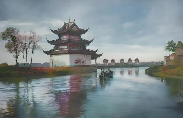 这座靠水的庙宇三层飞檐,白墙留出半幅空面,像预备给影子落的,庙前水面宽,风一来水纹像梳子梳过,祭日时有人摆香案在岸沿,少顷风大,香烟就被压进水里去了。