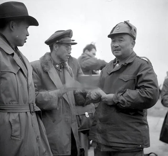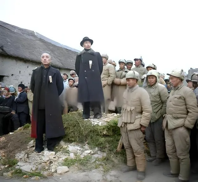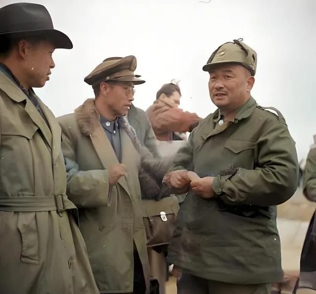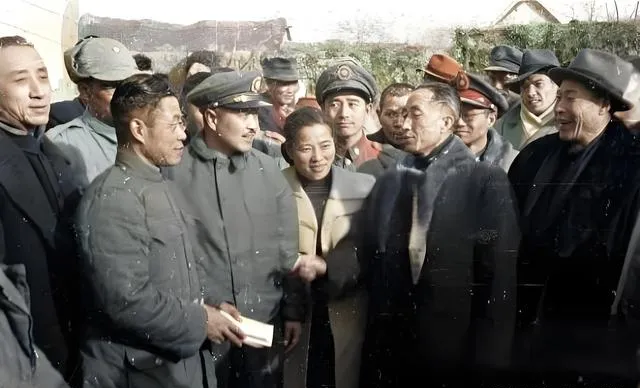 图中这件厚呢大衣叫军用呢风衣,颜色多是灰绿或藏青,肩章扣子都抛得亮晃晃,胸前别着一块硬纸做的胸牌,写着“慰问”字样,风一吹就拍打在胸口,站在风口的人说冷不冷,他笑着说不冷,手却一直往袖子里缩,机场的土道还没干透,皮鞋踩下去一圈泥印,飞机还嗡嗡地转着,场面看着热闹,空气里是煤油味和焦土味混着一起的味道。