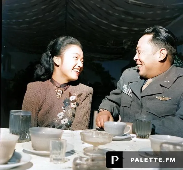 这张是罕见的轻松时刻,桌上搪瓷杯和玻璃杯混放,茶碟里还沾着糖渍,一位身穿军装的人同姑娘坐对面笑,灯影把两人的侧脸照得明亮,妈妈指着说,别看这一桌热闹,外头风一来,帆布篷还是会哗啦啦响,热闹一过,还是各走各的营路。