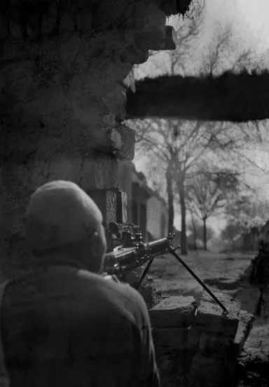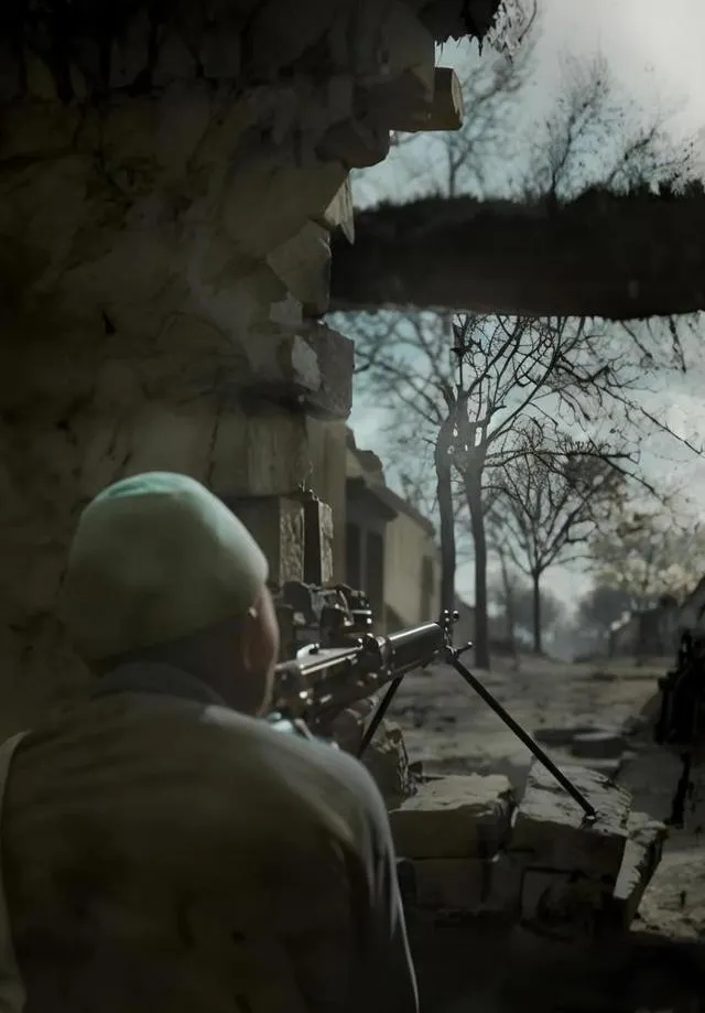 这个堆成半人高的小墙叫掩体,砖头不齐,缝里塞着麦秸,能挡子弹溅起的渣,射手蹲在后头,肩膀贴着墙皮,冷天一靠就能感觉到潮气,战斗一停把最上面的两块砖拿走,露出一条缝,望一眼又按回去,像搭积木一样简单。