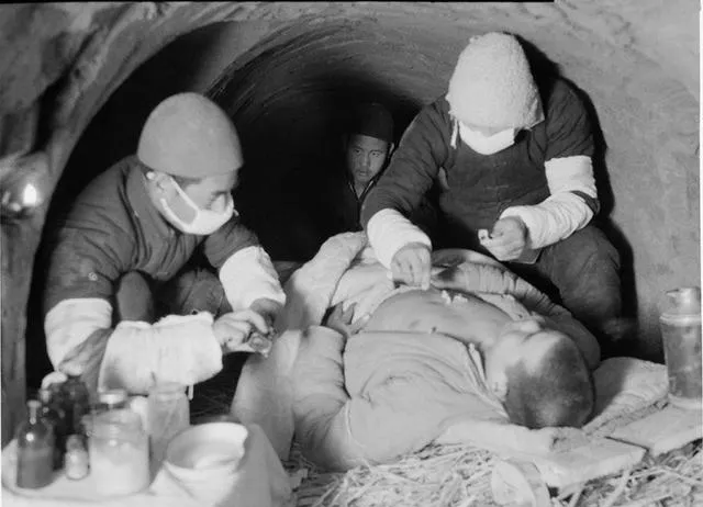这张里铺着麦秸的地方叫地下卫生所,几只小玻璃瓶排成一溜,灯光透过瓶壁,药水颜色深浅不一,医务兵的手在被窝边上飞快,纱布落下去没声,外头要是有动静,瓶子塞子用布包紧,塞进草筐就走,以前受伤扛到镇上可就晚了,现在救护抬进洞里就地处理,止血包、热水、艾绒全齐。