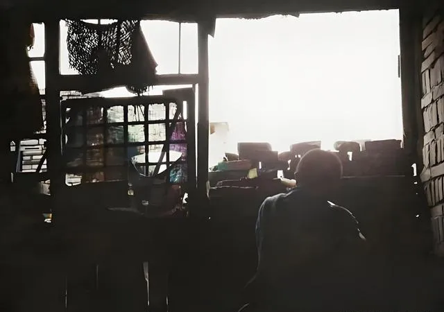这张逆光的人影是窗口的哨位,背靠竹框,旁边堆着瓦片和砖坯,手边挂着网兜,里面是干粮和信号绳,小时候跟在大人屁股后面,看他把窗纸戳个小孔,眼睛贴上,轻声说一句来了两个人,一个高一个瘦,然后把小孔抹上,像没动过一样。