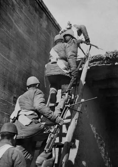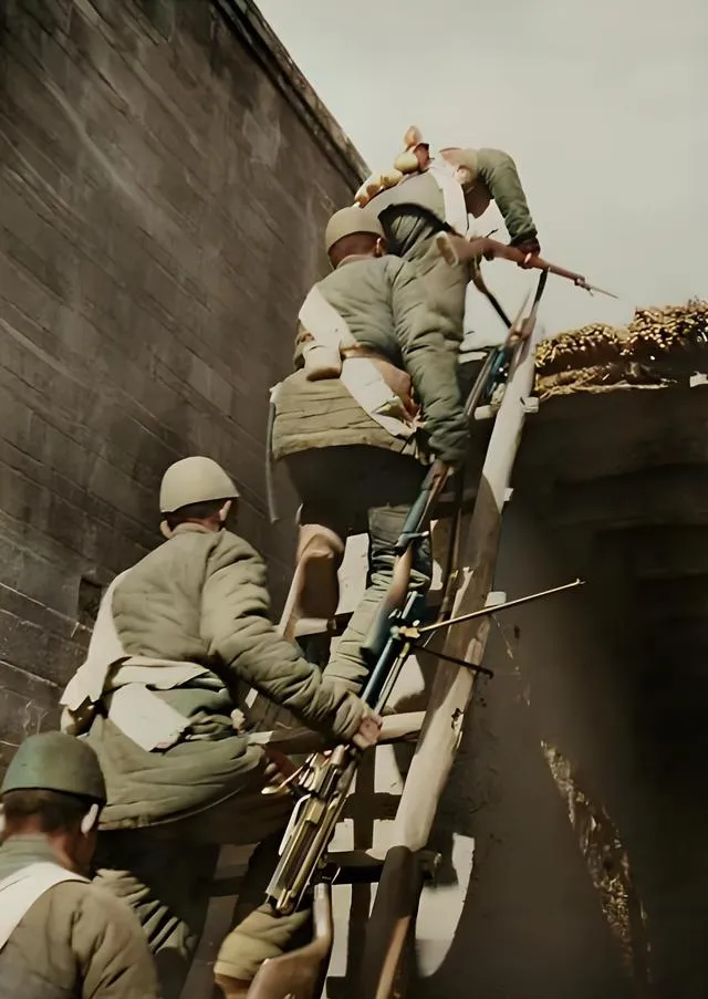 这个窄窄的木梯叫旋梯,梯档擦得发亮,兵们一手攥枪一手扶梯,脚底带着尘土,踩上去吱呀一声,最上头铺了苇箔,翻过去就是屋脊,奶奶说那会儿人多不喊号子,一口气上去不回头,怕下面的人听到动静。