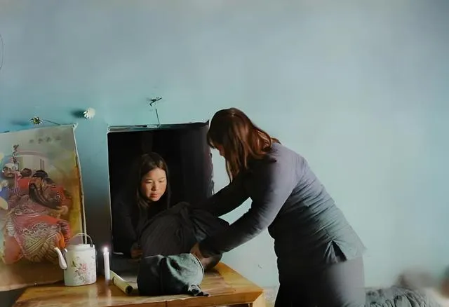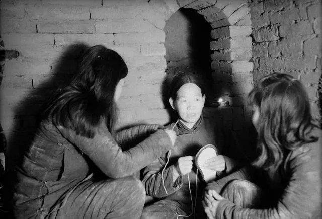 这个低矮的小室叫炕肚子,三个人围坐,手里一根锥子一根麻线,锥子穿过厚底时会发出噗的一声,灯芯有点儿哔剥响,阿婶说一天能做十二双,线头用口水一咂就抿齐,鞋帮上缝出一圈密针,看着紧实,做完装进口袋从小洞里递出去,地面上只见到一只旧水壶在窗台上换了个位置。