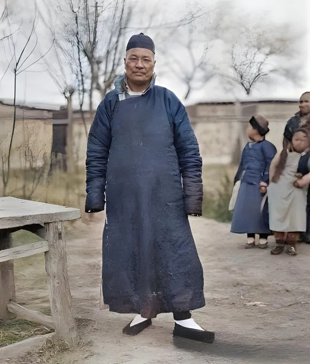 这个穿着棉袍的老汉,帽檐往下一压,脚下黑布鞋踩得平平的,袖口鼓鼓囊囊,像塞了半个冬天的寒气,他站在木桌旁边,身后几个孩子把好奇都写在脸上,爷爷看见他就笑,说这身打扮是正经的过日子装,做活时系围裙,出门抖抖灰,白袜面一露,人就精神了,街上有人叫一声老哥,他回头慢半拍,不着急不慌张,像风都得绕他一点走,那会儿的人说话慢,做事也慢,慢里却不糊涂。