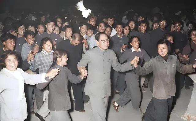 这个围成一圈的场景,是学校里最热闹的夜晚,老师和学生拉着手笑成一团,火光从人群缝隙里蹿出来,照得每张脸都亮堂堂的,左边那位姑娘边跑边笑,袖口跟着风跳,外公说他念书那时也有这样的集体舞,鞋底沾着土,心里却轻快得很,现在我们聚会多在屋里,灯光均匀空调给力,可少了这种露天的热闹,脚下踩着地面的踏实。