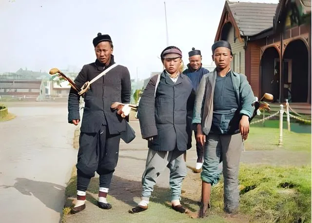 清末彩色老照片:痛苦的杂耍艺人;卖草鞋小贩;李鸿章美艳小妾。