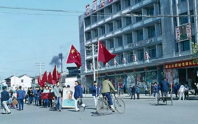 这个十字路口在国营商店门口,墙面是水磨石,玻璃橱窗里立着空模特,队里举着红旗,前面有人抬着画像,后面的人推着自行车跟着走,一辆三轮车蹬得咔吱咔吱,楼角上的扩音喇叭不时放一阵歌,烟囱那边冒出黝黑的烟,像是给天空添了个逗号,爷爷说当年店门口的黑板报隔三差五换一次,粉笔字写得板正,路过的人都会停下来看两眼。
