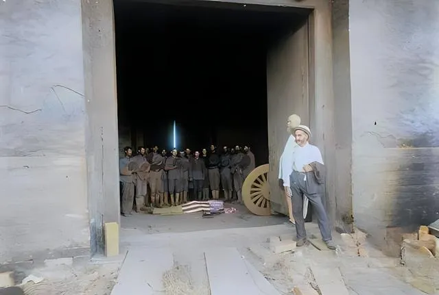 图中这处深黑的门洞就是老北京城门的内廓,地上那块被条纹覆盖的长形物件,被围成一圈的兵与轱辘巨大的木炮轮,一静一动的对照扎眼得很,城门的砖缝被烟火熏得发乌,门槛木板被碾压出一道道痕,站在侧边的人低着头,像在等一个说法,又像在躲一阵风,镜头没说话,颜色却把凉意递了出来,奶奶当年讲起这段事,老是叹一句世道乱了命就轻了,可如今再看这张照片,只觉得一句话压在心口,入侵留下的,不止是弹孔,还有沉默。