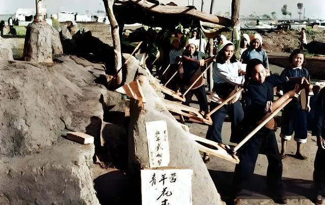 这群扎着头巾的姐姐们组成鼓风队,人手一根长木杆,一下一下压着风箱,胳膊上的青筋都冒出来了,喊子整齐,口号贴在旁边的木牌上,妈妈说她当年也被编进过这样的队,白天拔草挖矿,晚上接班守炉,回家时身上都是烟灰味。