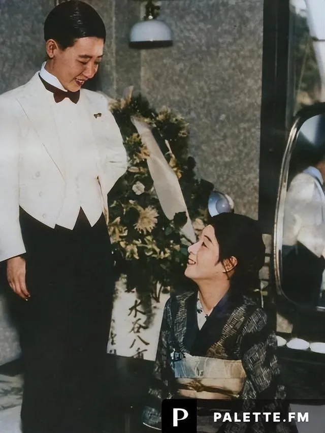 左边这件是白色燕尾,扣子只系一粒,腰里还插着手,右边和服女子仰头望她,眼神里有光,像在说你可真会拿捏场面呀,这类照片放到当时的纸面上就是潮流,社交场合里一套衣裳比一句话更有用。