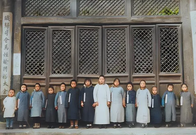 这排排站定的女孩,是包衣秀女选拔时的场景,统一长衫,胸前挂着号签,眼神里多少有点紧张,内务府的人要先看形貌再问身家,爷爷说中选的要进宫学礼,落选的回家或进王府做侍,听着体面,其实规矩一道一道,转身就要改口改姓,像把旧生活封起来。