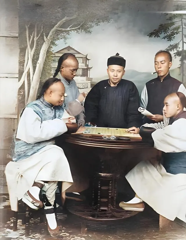 这张圆桌围着几位公子,袖口、云肩、靴面都干净利落,棋子啪嗒一落,旁边看客把腰探过去,嘴上不出声眼里却替人算路,外公说那会儿下棋是正经社交,落子有输赢,抬手要体面,现在线上对局一秒十盘,快是快了,茶香与闲工夫就淡了。