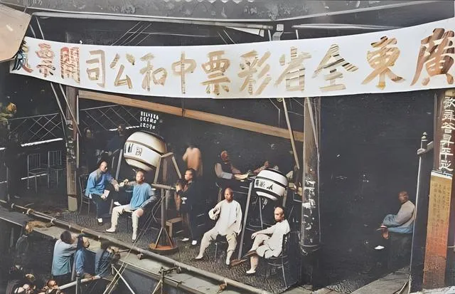 这条大横幅下面是彩票开票,大鼓、号筒、长案摆得齐齐的,围观的人端着手等喊数,谁都盼着今天能翻个身,旁边酒旗在风里抖几下,像专门来烘托气氛的,奶奶叹气说,想奔一个盼头,人就愿意挤一把,现在手机里也是各种开奖提醒,热闹没少,心跳一样快。