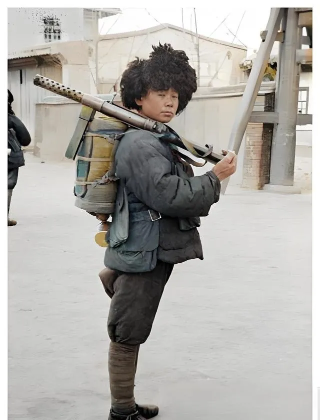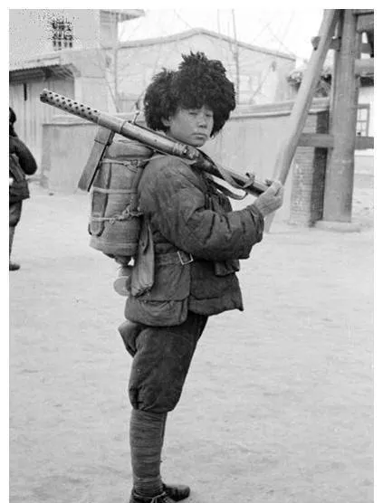 这位小家伙扛的是花机关,枪管上密密的散热孔一排排,厚棉袄外罩着打着补丁的背带包,毛绒大帽压住半边额头,脚面绑腿缠得实,站姿微斜却稳,像极了冬天里跑完差事刚回驻地的样子,奶奶看这种照片总嘟囔一句,那个年头,娃还没长开呢,就学会把家扛在肩上了。
