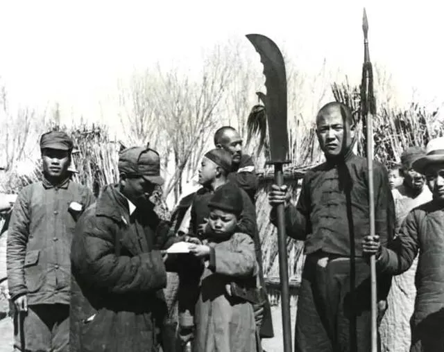 这件寒光一片的叫大砍刀,刀脊贴着月牙口,握柄粗粗糙糙,旁边立着长枪,民兵站定给干部押送物资,孩子接过小包裹抬眼一看,那劲儿比大人还认真,妈妈说,家里那口铁锅当年也是村里人合着票子换回来的,省着用过了好几年。