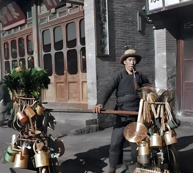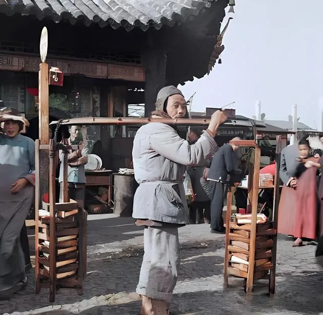 你有没有这种感觉啊,看老照片的时候耳边会自己冒出市井的吆喝声,锅碗碰撞的叮当脆响就在眼前,民国那会儿的小贩们挑着担子走街串巷,靠一手手艺和一张热乎脸吃饭,旧影翻出来,人情味儿一下就回来了。