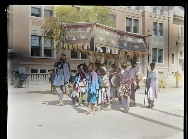 这些上色老照片像把抽屉拉开了一条缝,里面塞着人间的手艺和体面,也有不肯回头的风霜,以前的孩子会敲锣、会织藤,也会在寒风里排队领一碗粥,现在的孩子会打字、会上网课,也会在屏幕前问一声为什么,我们不必一味叹旧,也别轻易忘了,哪怕只记住一只鼓、一根幡、一碗热粥,记住了,就算对得起这些照片里的光。