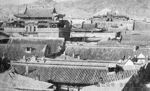 张家口堡子里的文昌阁和远处的玉皇阁。