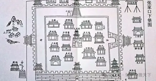 张家口有些地名与军营有关,像清军的上东营、下东营,察哈尔蒙古军的蒙古营,汉家军的南营坊,清军绿营“树楼橹、屯将校、严走集、讥往来、时启闭”。