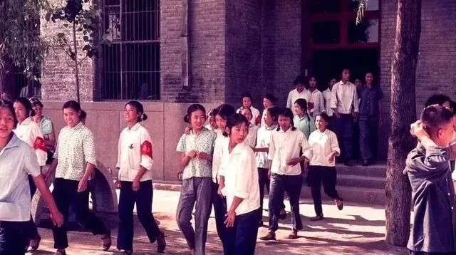 这群穿浅衫的叫北京中学生队列,楼门口树荫底下一哄而出,袖章鲜红,步子带风,老师站在门槛边点头,铃一响就散,放学以后街口还能看见他们抢糖葫芦的影子。