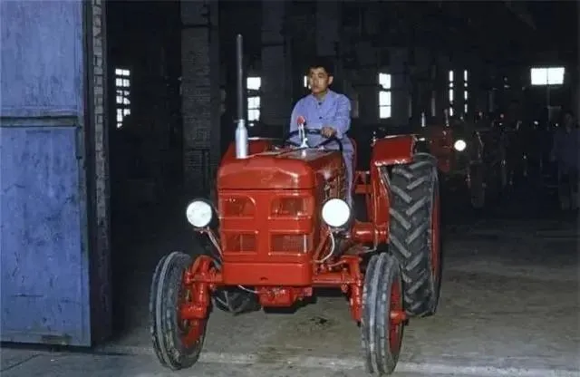 这只红家伙叫东方红拖拉机,油门一推嗡嗡叫,车头方正,排气管直挺挺,师傅把帽檐压低开出厂房,后轮胎印重,压过地面就像画了两道黑线,从此地里活计渐渐省了人力。