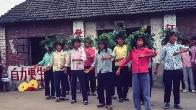 头顶插树枝的叫文艺操演,鼓在墙边晒日头,口号刷在门楣上,队伍一二一摆手摆臂,衣裳有粉有绿有黄,都是素布缝的,动作整齐,一停还要纠成一团互相笑场。