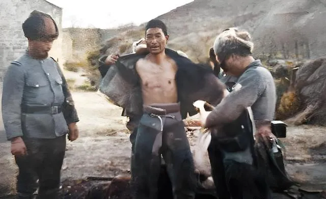 这照片不用旁白,背景是夯土墙和干硬的地面,都是北地的质感,男人抬着下巴,不求情也不逞强,像在等一场无声的判决,以前我们在课本里读到“拦查”,现在看见手指掐住衣襟的分寸,才知道那四个字有多冷。