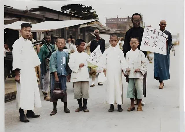 这群孩子叫送茶队,手里一个提壶一张小旗,旗上两个大字写得直直的,衣裳短过脚踝,露出小腿的青筋,身后有大人护着,像把他们往前轻轻推了一把,小时候我在家里遇到渴得慌时,会对着暖水瓶咕嘟咕嘟灌一口,后来读到五卅的故事,再看这张照片,才懂得“送茶”不是简单的解渴,是把温热递给在街头喊话的嗓子。