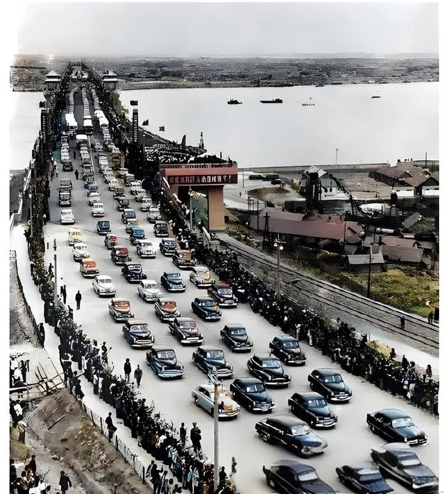 这条长龙叫通车典礼,桥面铺开像一张展开的宣纸,彩色小车一格格排着,前脸亮得闪眼,桥头堡上立着红牌,江水在旁边沉着走,外公第一次过桥时掐表记时间,说从这头到那头,一支烟都抽不完,桥是把两岸连起来的线,也是把心里那口气顺过来的线,以前过江全靠轮渡,遇上起风就发愁,现在桥多了,人也不再围着水急慌慌地转。