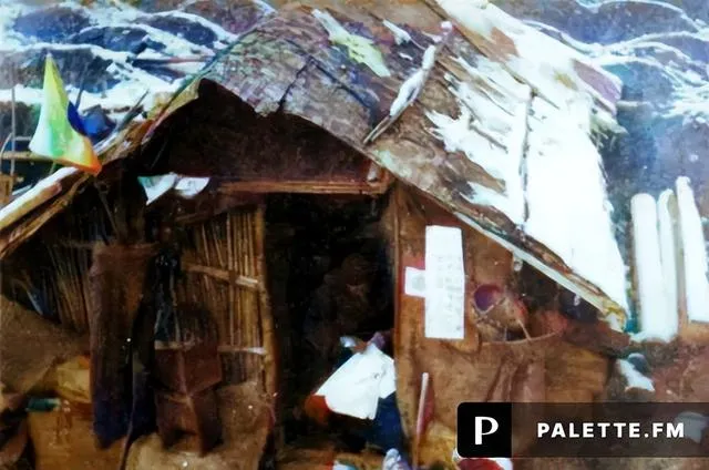 这顶棚叫救护棚,竹竿搭骨架,芭蕉叶一样的片子压在上面,边角被雨水啃得露丝,门口挂着红十字的布牌,风一过就飘,里面暗着,像一口吞人的井,听老人讲,药不够用,绷带都是洗了再晒再用,以前求的是不再流血,现在求的是别再忘记,走到这里,照片像把人推到坡顶,回头一看,满山沟都是坑。