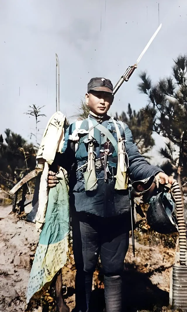 这张照片里的士兵像个移动的补给架,肩上插着长枪和片刀,身前挂着水壶、干粮袋,还有一串杂色旗帜,颜色鲜得刺眼,像要把士气插在风里这类旗子不是只为好看,队伍一拉开,颜色就是方向,喊不出声的时候,旗就是命令,现在电台一嘀嘀就能传话,以前靠手一扬,风一抖,所有人就往那边冲。