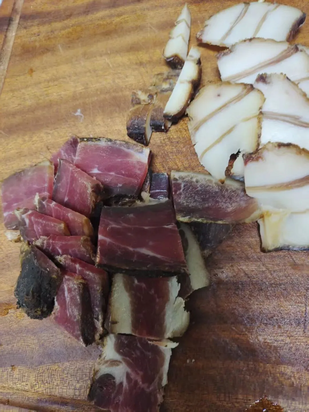 然后我发了张前几天切的腊肉。