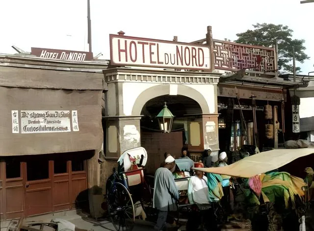 这个大门口牌匾写着洋字的叫旅馆店招,拱门下挂一盏绿罩煤气灯,旁边是细轮子的马车,簧片抖一抖,皮鞭轻响一声就出发了,听着新鲜吧,咱祖辈那会儿已经跟洋场打过照面了,现在路上车子千样万样,喇叭一响整条街都听见,那会儿马蹄一叩,尘土慢慢扬起来,节奏全靠车夫的腕子。