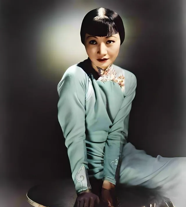 这位坐在摄影棚里的,是黄柳霜,一身青色软缎,上肩有朵绣花点着,刘海剪得齐,眼尾一挑就有戏,她是闯好莱坞的那位,镜头打在她脸上,立马就活了,外婆当年听电影院门口的小喇叭播她的片名,嚷嚷着要去看一场,结果排到晚场还不肯走。