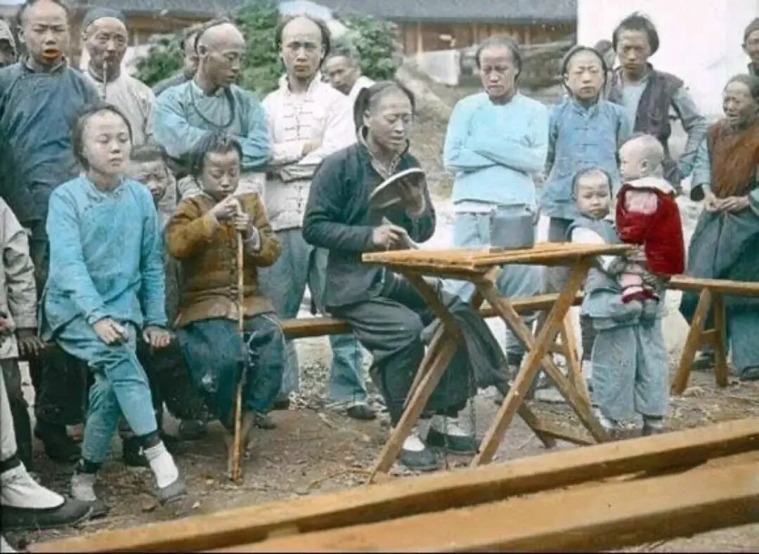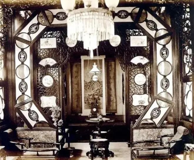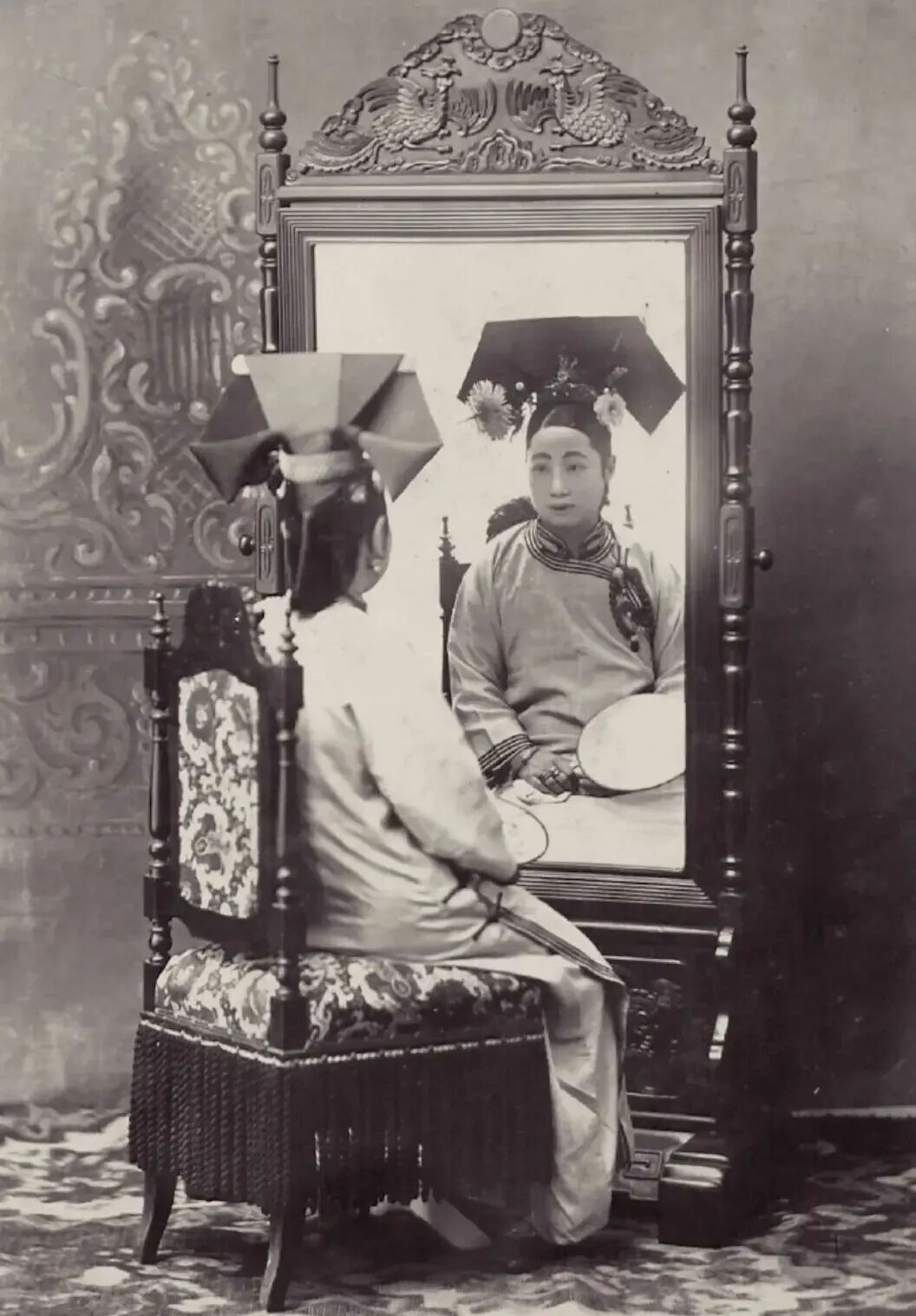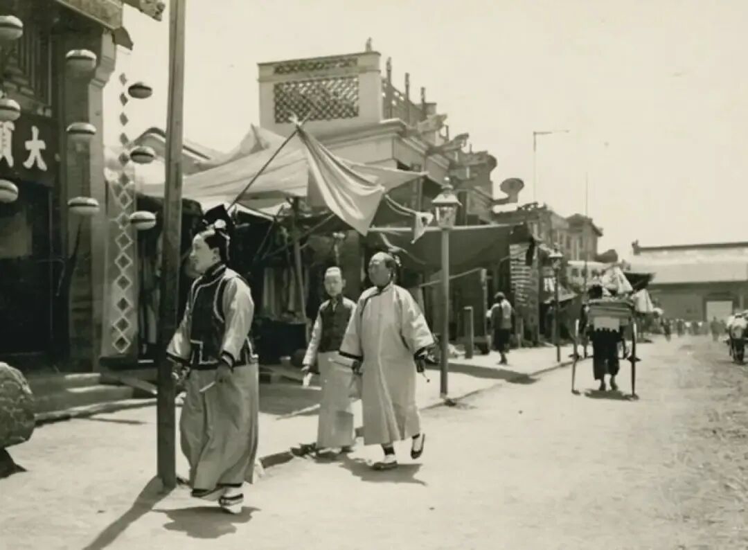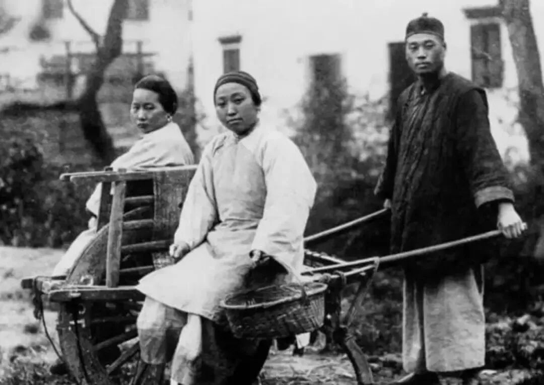 清末的独轮车,两边各坐一人,轮子缓解了重量,一个人可以推起来。1909年,四川的旅馆。可以看到这栋房子的横匾上,清楚地写着 “旅馆” 二字。新婚之后的溥仪和婉容,溥仪刚买了一台照相机,正在鼓捣如何使用。1930年北京,姐妹合影。