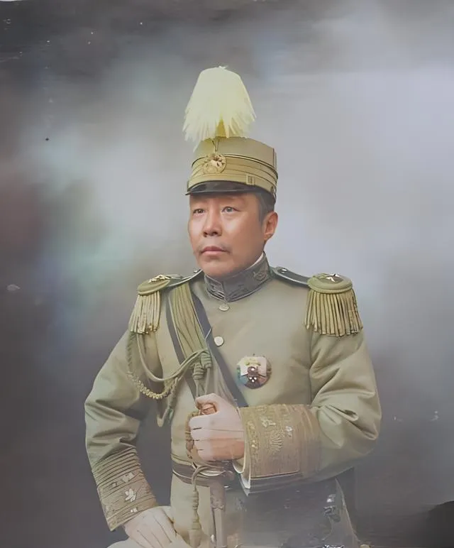 这个椭圆框里的军装像叫赵秉钧,军帽檐微翘,胸章和铜扣子在灰蓝军呢上冷光一片,胡子修得细细,眼神却不松懈,制服上的立领绣线很密,像刀口一样利索,老照片一上色,肩章的金边就活了,那个时代的人,往往把命系在纽扣上,一颗扣子,就是一层职责。