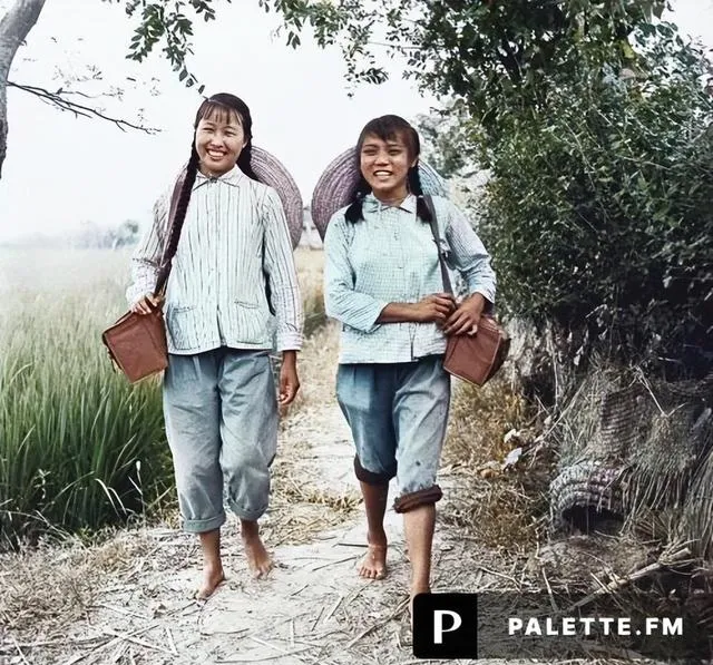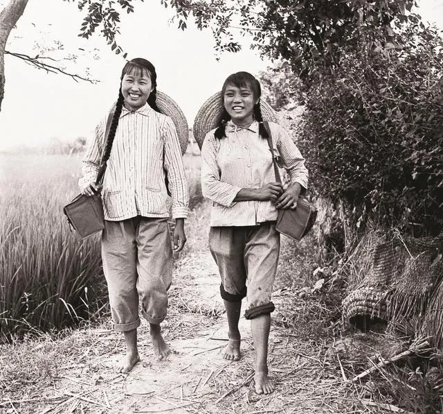 这个扁圆的大帽子叫箬笠,背在身后像两轮小盾牌,裤管挽到小腿,脚底带着田泥,路径边的稻叶扫在脚踝上发痒,她们笑得很敞亮,提着小书包一路叽叽喳喳,谁也不赶时间,妈妈看这张照片会唠一句,你外婆年轻时就这么走路快,脚板结实得很。