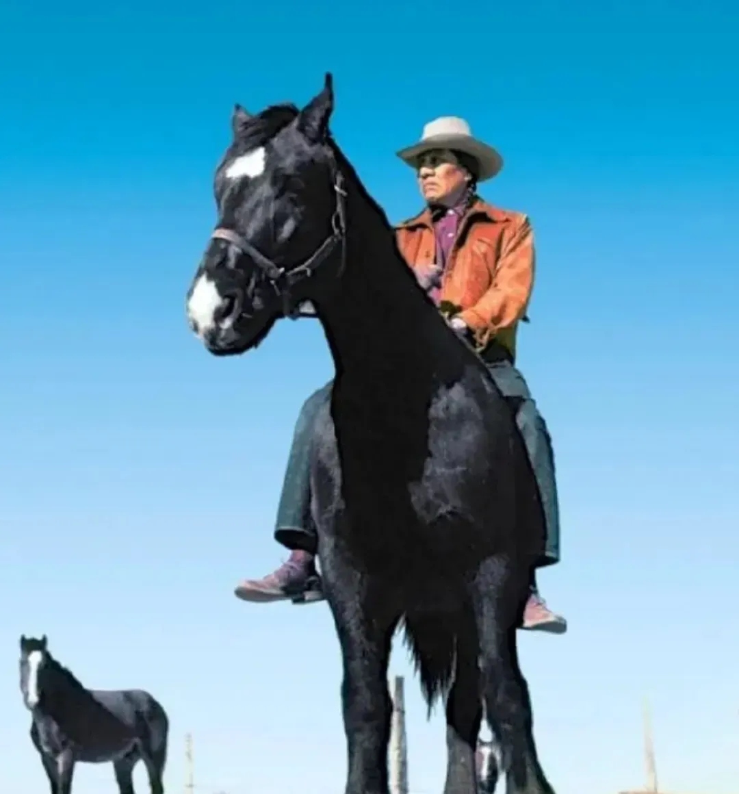骑着高头大马的印第安人凝望着远方