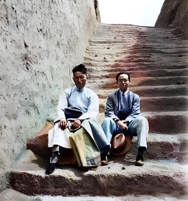这对并肩坐在夯土台阶上的兄弟,一个布袍,一个西装,膝上都压着宽边遮阳帽,手心里有土的颜色,他们是去看殷墟的考古工地,图中这两位叫梁思成和梁思永,一个抬眼看光,一个低头抚帽沿,像刚从坑壁边上起身歇口气。爷爷说起他们就会补一句,懂房子的去看古墓也认真,见一片瓦都会量尺寸记脊纹,那会儿条件差,靠眼力靠纸笔,现在有仪器有无人机,路倒是好走了,心里的那股敬畏可别丢。