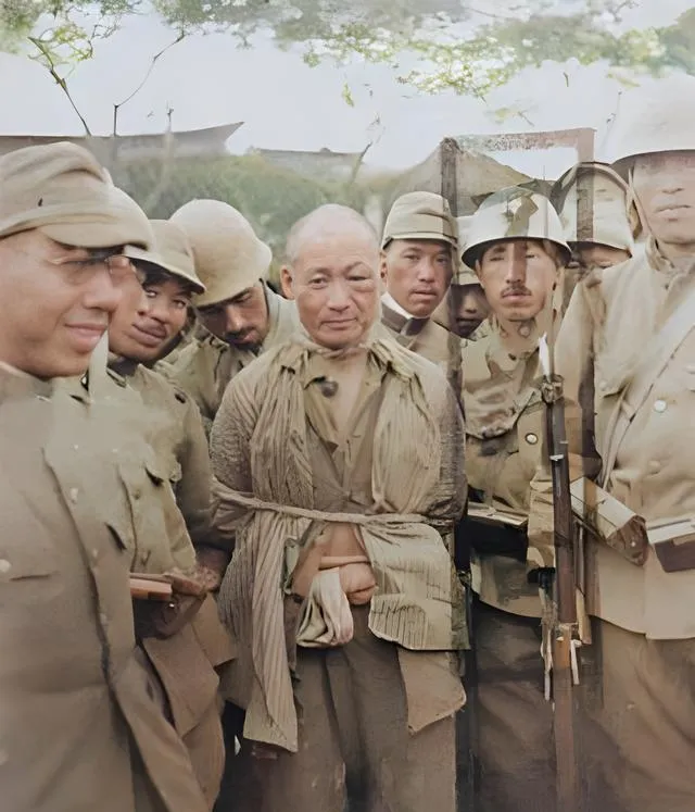 这张更安静也更扎心,勇士被粗绳捆着,衣襟破散,嘴角却挑起一点点笑,这笑既不是轻浮,也不像认命,更像在说你们想要什么表情我偏不给,周围站满了日本兵,脸却各不相同,有狐疑有得意也有不安,最刺目的还是那把枪的枪口,静静对着空气。外婆说,照片后来没公开,不是没拍到,是不敢给人看,以前一张纸片能改变人心,现在我们把它晒出来,光就多一点。