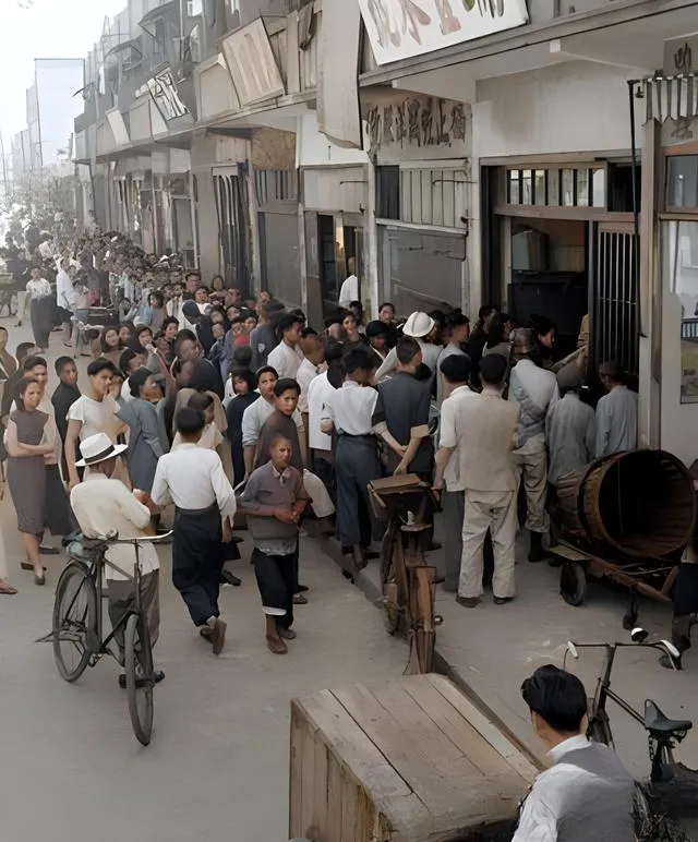 这条长龙不是摆拍,门口那位举着的小纸片就是排队券,白底黑字,折角磨得起毛,屋檐下招牌东倒西歪,木匾还留着被拆过的钉眼,街上两辆旧自行车靠墙,辐条间的尘土一层又一层。那时候大家的脚步慢不下来,肚子饿着急,心里却要装着秩序两字,妈妈笑我说,现在你们点个外卖不耐烦多等三分钟,以前一袋面粉能让人站一上午,还得守着不挪窝。