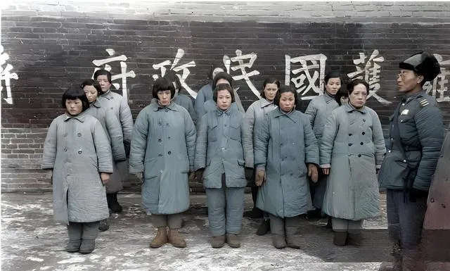 这个队列里穿着厚棉蓝大衣的是被俘的女兵,衣襟上的扣子是一粒一粒的黑纽,脚下是起霜的砖地,墙后那几行白字把风刮得更冷了,队形排得直,肩却不自觉耸起来,像对寒意的本能反应。奶奶叹口气,说那年冬天的风从辽河上刮过来,衣服再厚也透骨,照片里她们不说话,眼神落在脚尖,像在数地缝里的白霜,数着数着,天就该黑了。