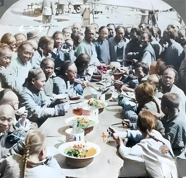 另一张是兵工与帮役挤在长桌边吃饭,粗碗粗筷,热气把镜头糊了一层白,菜色简单却见得出用心,葱段在汤里打着卷,大家边笑边扒拉,笑里带着累,也带着踏实,奶奶常念叨,能吃上一口热乎,日子就不算太差,以前是这样,现在加班完能在夜里捧一碗面,也还算过得去。